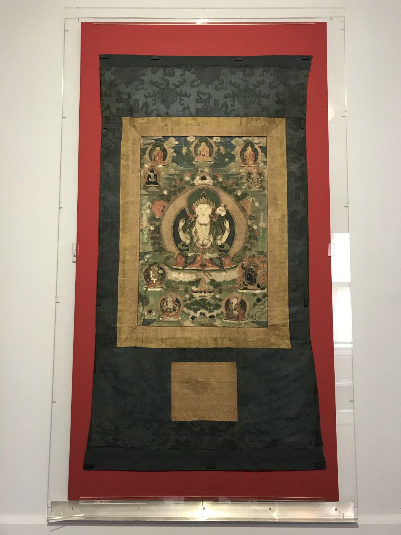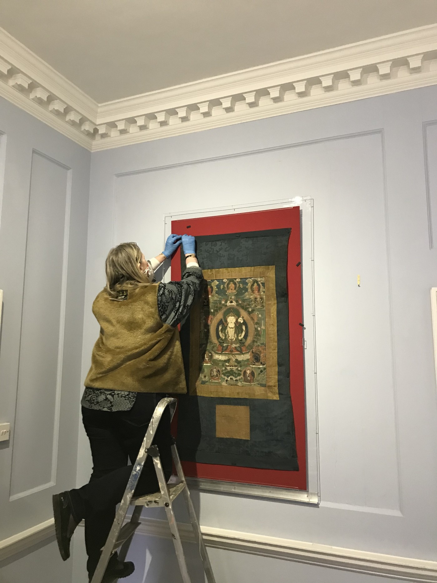 The aim of this grant was to create a bespoke case and mounting system for the thangka (Tibetan temple wall hangings) at Chiddingstone Castle, so that they could be displayed in the Buddhist Room.