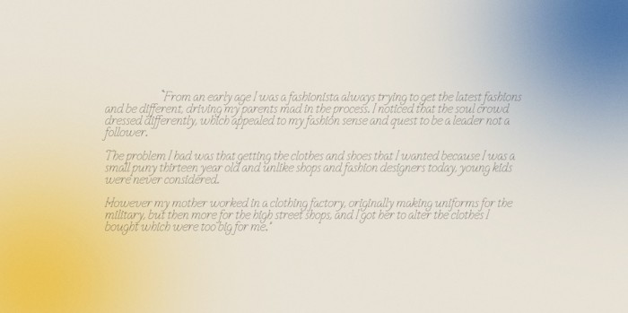 I received the Yarwood Research Grant in 2021 for my Masters Project: Long After Tonight is All Over – ‘How was Black American Soul Music Reflected in the Style of British Followers?’. The project was an exploration of the 1970s Northern Soul music scene as a Fashion Subculture in the North of England. The project featured interviews which focused on keepsakes and nostalgia.